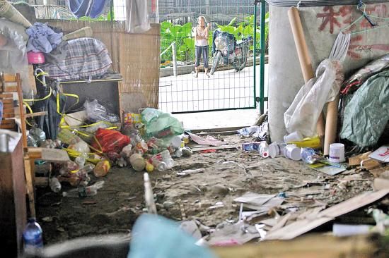 這就是流浪者的家,只是借助簡單的鐵絲網(wǎng)、樹木、和破紙板建構(gòu)而成,看到這樣的情況,不由讓人心生憐憫,想到這些人每天生活在這樣的環(huán)境,夏天該有多熱多少蚊蟲,冬天該有多冷.......據(jù)記者了解,居住在這的流浪者除了老弱病殘之外還有好多正常人,真是難以理解為什么這些正常人寧愿選擇這種環(huán)境,以這樣的生活方式生活著,而不是用自己的雙手努力生活得更好,是鐵絲圍欄網(wǎng)給了他們方便,讓這些正常的流浪者拿這種方便當(dāng)成了隨便。去年8月,佛山就出臺(tái)了《佛山市城市容貌標(biāo)準(zhǔn)》,由此看來要實(shí)現(xiàn)凈化公共場所環(huán)境的目標(biāo),似乎還有許多工作要做。